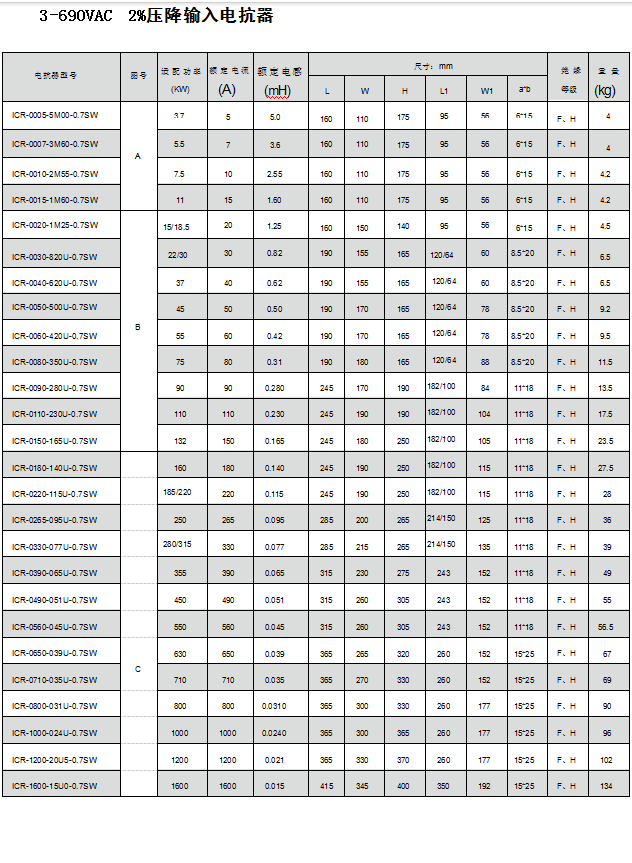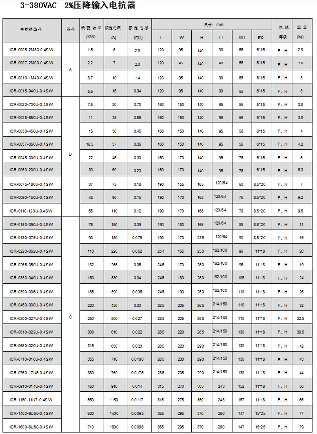 安装在变频器输出端,用于限制变频器与电机连接电缆的容性充电电流,钝化变频器输出的PWM波的电压上升率。电机电缆长度超过一定值时,建议在变频器与电机之间插入一个电机电抗器用于补偿在长导线时的电容再充电电流。此长度决定于变频器的额定值以及电机电缆的类型。