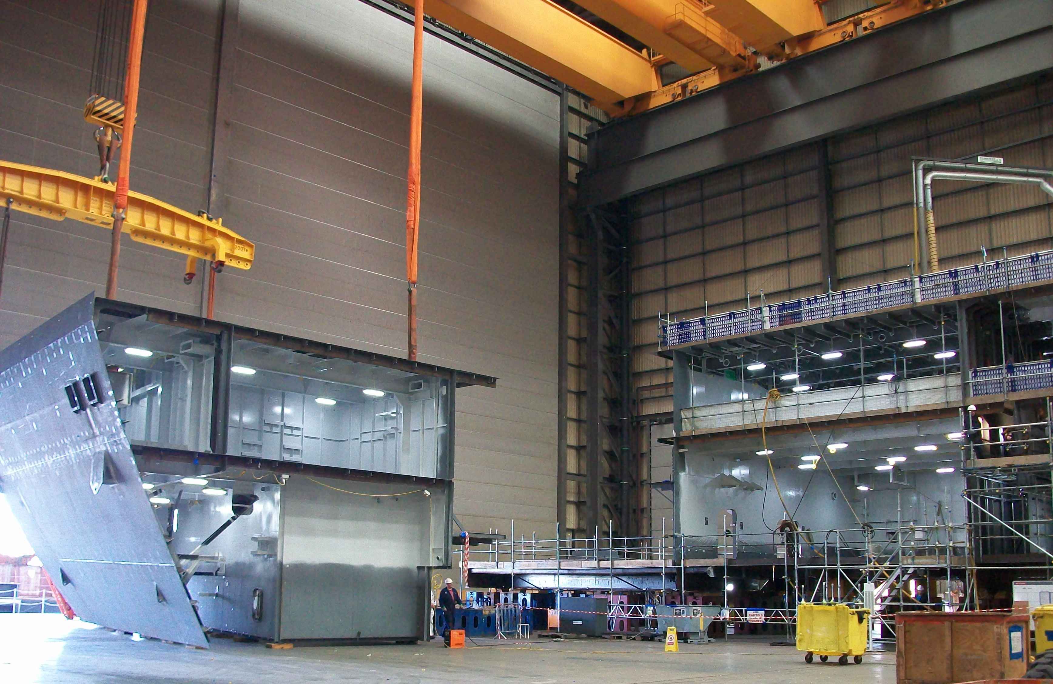 ※ 船体装备焊接车间:完成船体零件、部件、分段、总段的装焊和船体总装工作。
